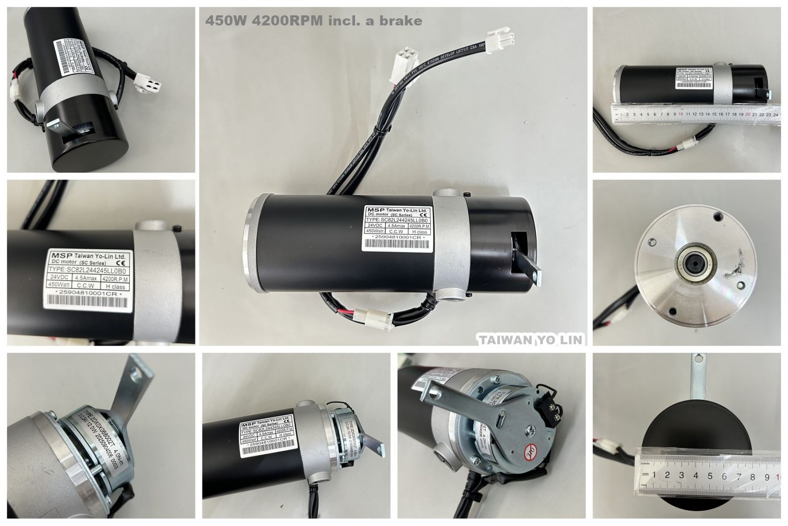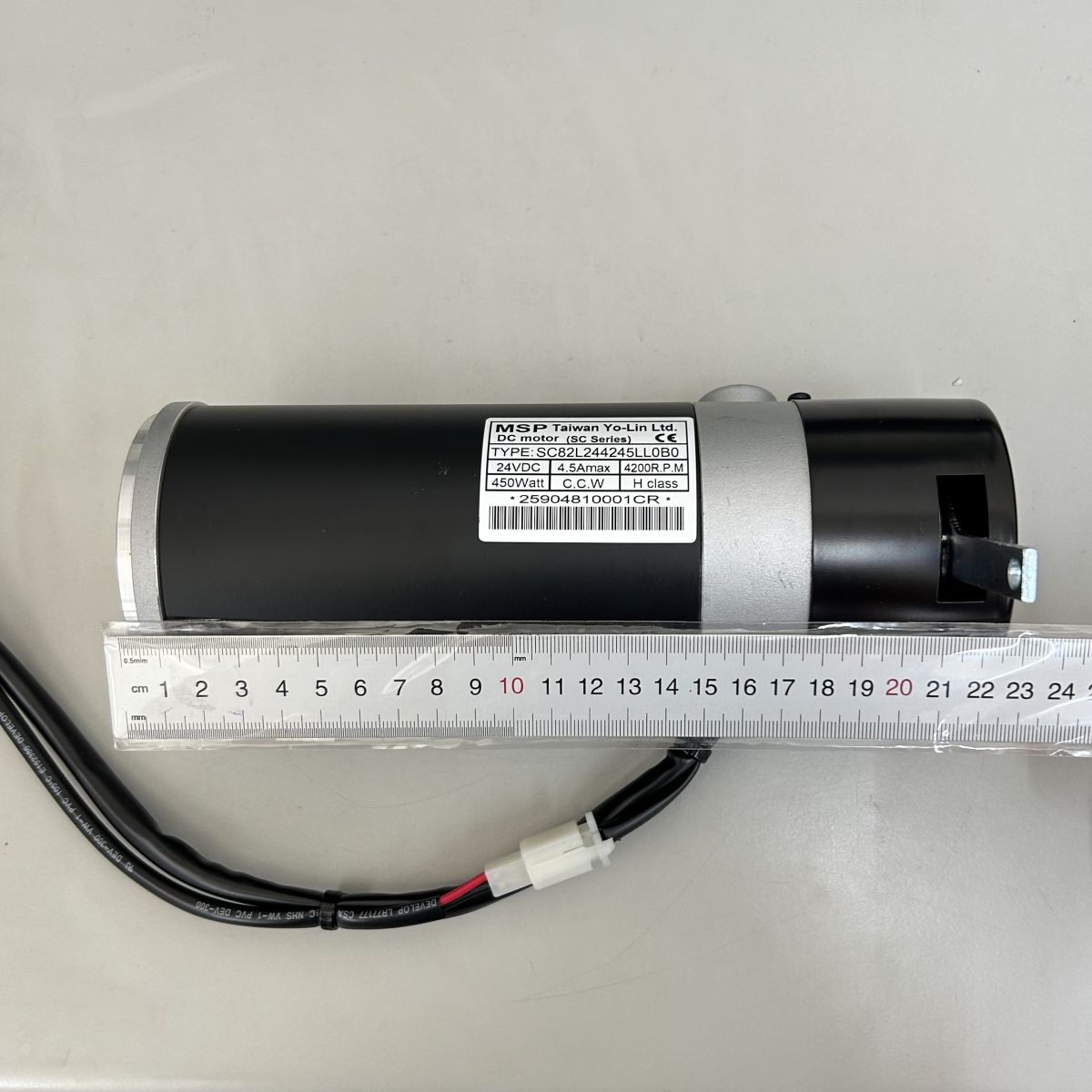 Product Specification ►Brushed 24V DC Motor (2 Poles) ►Output Power : 450W (5.5Amax) ►Speed:4200rpm ►Code:SC82L244245LL0B0 ►Brake BR-EW402: 4Nm, 12W, 2DX0X068002T ►Weight:4470g ►Made in Taiwan ►suitable for Comfort mobility scooters